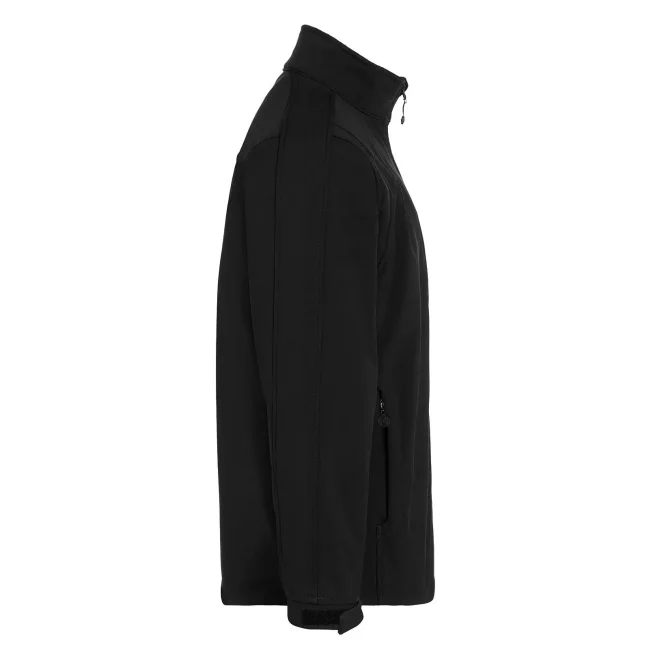 95% poliestere, 5% elastan. 330 g/m². Giacca soft shell da uomo in tessuto funzionale: interno in micropile, 3 strati di tessuto funzionale con membrana TPU, antivento, traspirante e impermeabile (colonna d´acqua pari a 5.000 mm). 2 taschini laterali con cerniere lampo, 1 taschino verticale sul petto con cerniera lampo, cordoncino elastico sull´orlo, cerniera lampo frontale per apertura e chiusura rapide. Lavabile a 30°C.