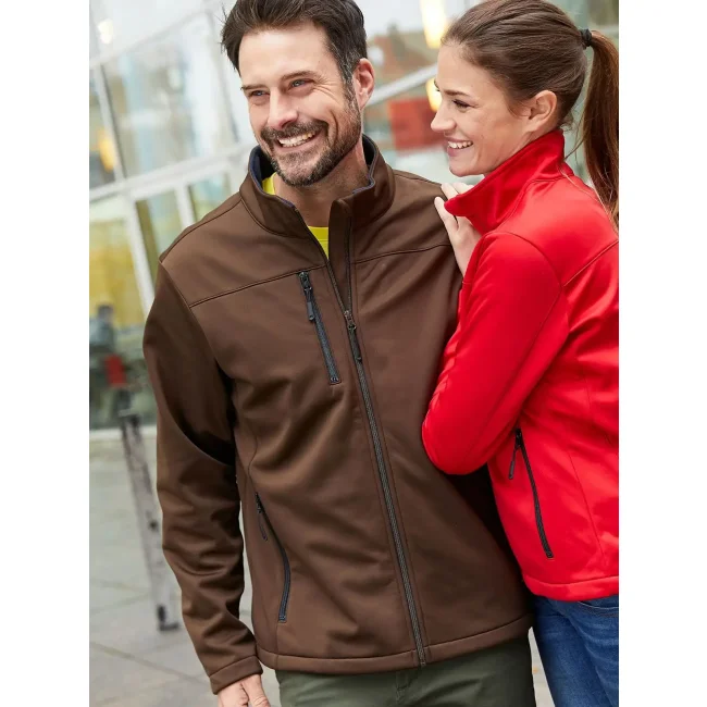 100% poliestere riciclato. Giacca softshell dal taglio sportivo, tessuto a 3 strati con membrana TPU. Antivento e idrorepellente (5,000mm colonne), traspirante e permeabile al vapore acqueo, pile interno, rivestimento in mesh sul davanti, colletto alto. 2 tasche laterali e un taschino sul petto con zip, zip frontale YKK con protezione per il mento.