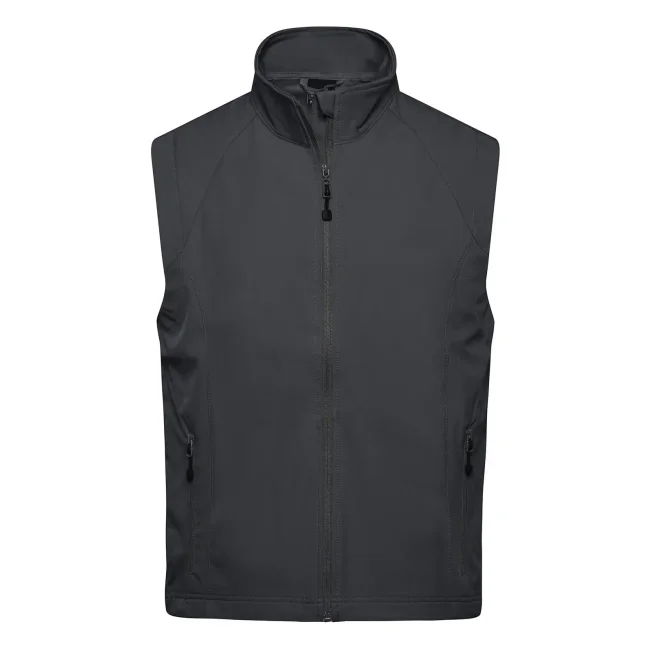 90% poliestere, 5% elastane. Gilè in softshell, Tessuto funzionale a 3 strati con membrana TPU, Idrorepellente e antivento (2.000 mm colonna d'acqua), traspirante (2.000 g/m²/24h), Le cuciture non sono chiuse, Tessuto stretch morbido sportivo, 2 tasche laterali con cerniera, 2 tasche interne, Cordino elastico con stopper in vita. Colonna d'acqua 2.000 mm, antivento e idrofugo
