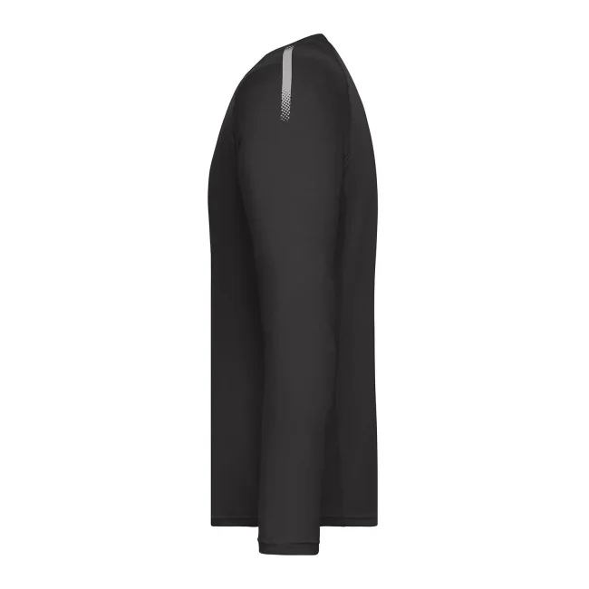 92% poliestere riciclato 8% elastan (tessuto esterno 1), 100% poliestere riciclato (tessuto esterno 2). T-shirt sportiva alla moda, traspirante e con regolazione umidità, asciugatura rapida, leggera e confortevole, maniche raglan, collo rotondo, retro leggermente lavorato, stampa a contrasto sulle spalle.