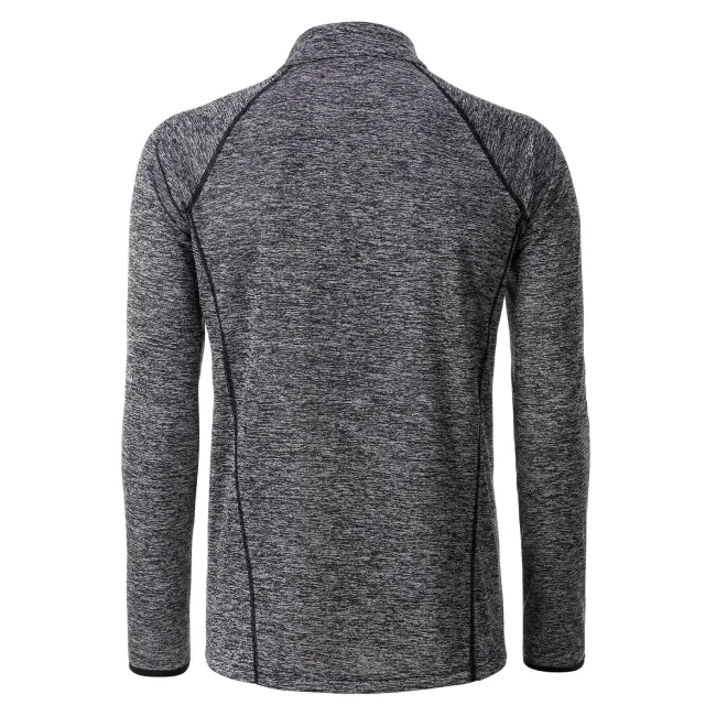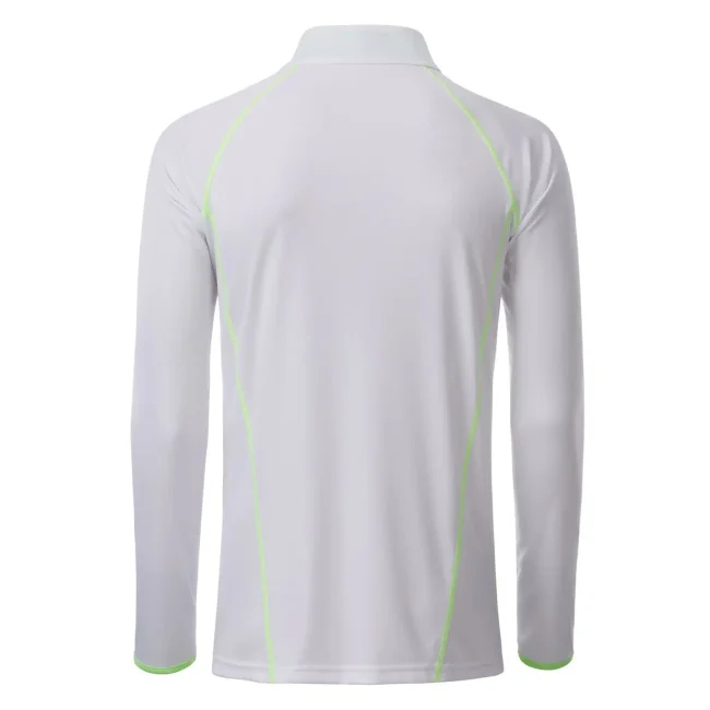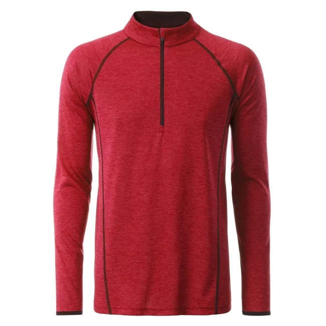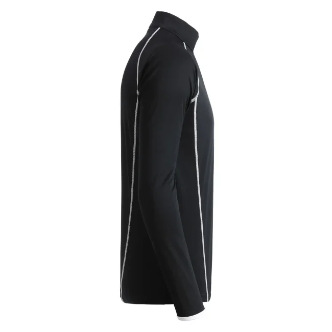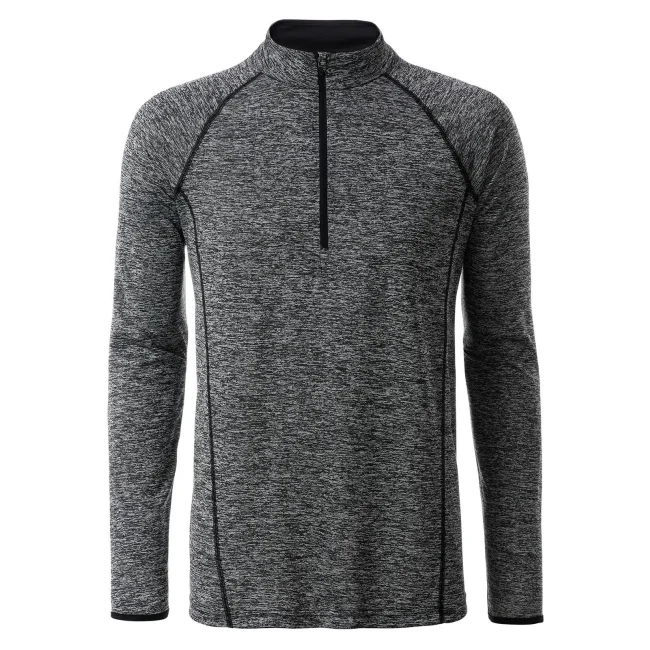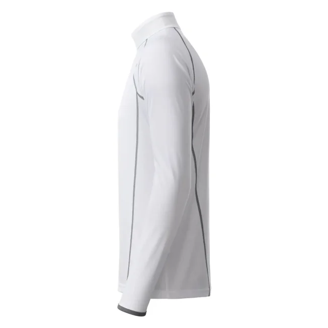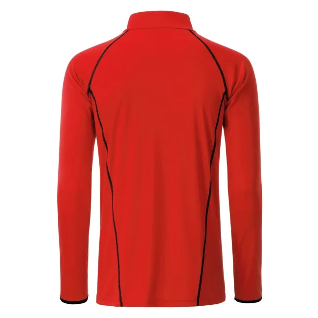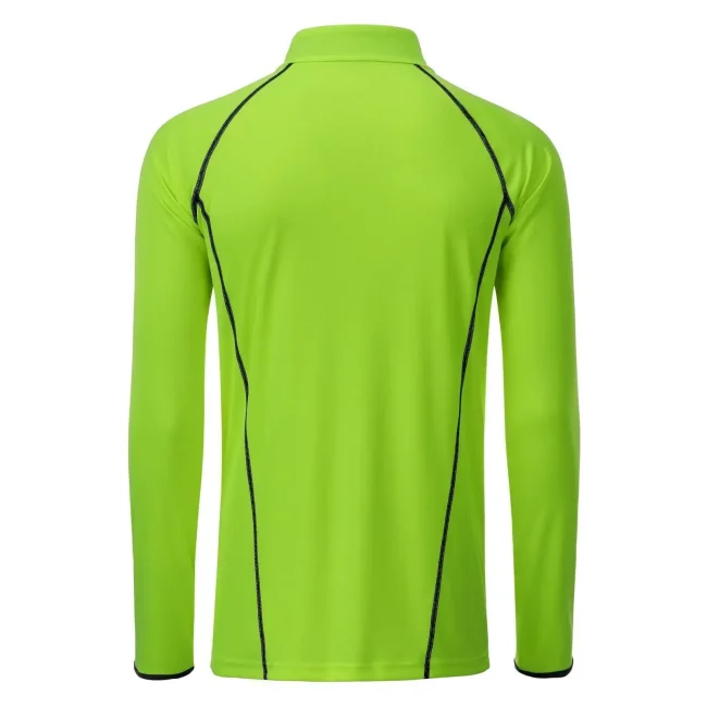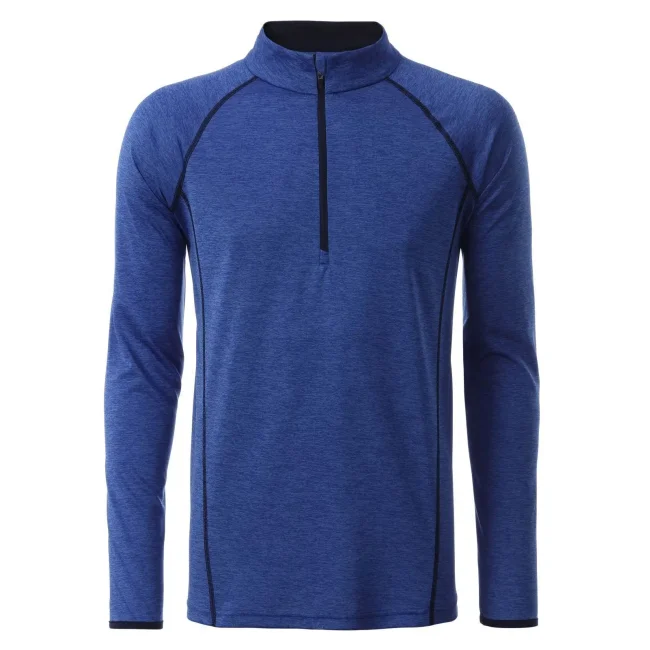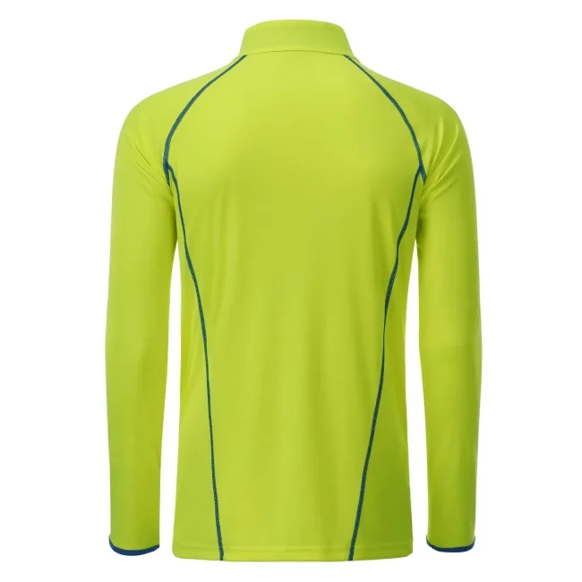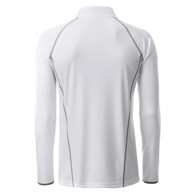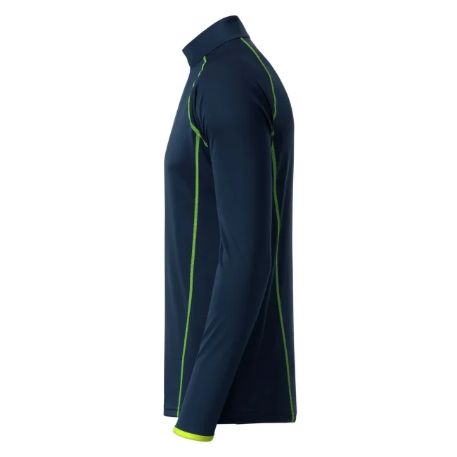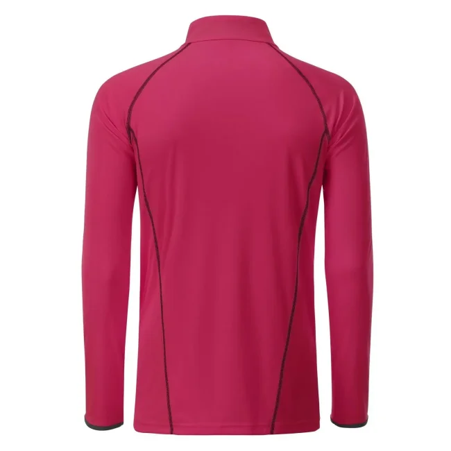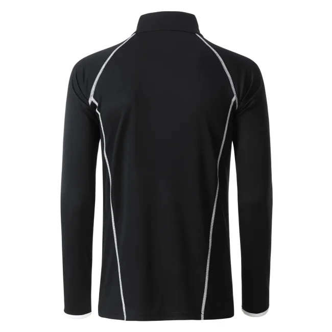 100% poliestere. T shirt manica lunga per fitness e sport Transpirante e con regolazione umidità. Asciugatura rapida, leggera e confortevole. Maniche raglan, collo alto. Cuciture in contrasto sul davanti e sul retro. Zip con protezione per il mento. Tessuto esterno (130 g/m²).