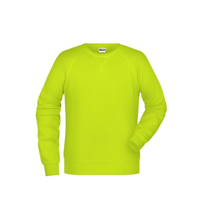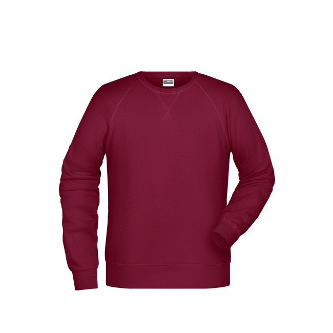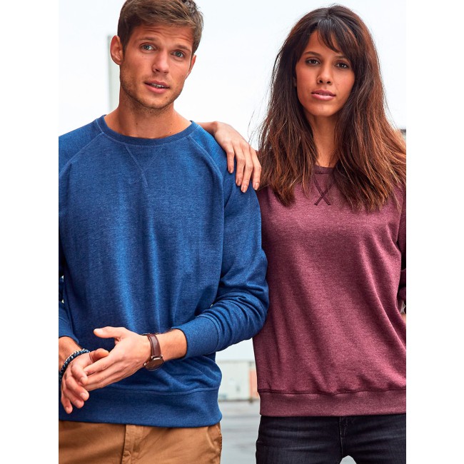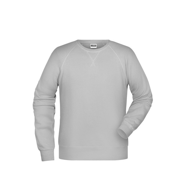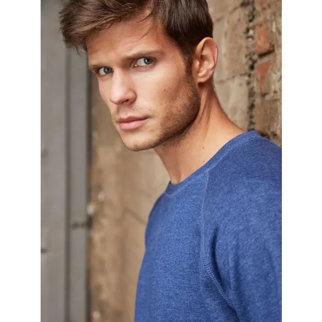 85% cotone organico ring-spun, 15% poliestere. Felpa da uomo in tessuto di alta qualità French Terry, girocollo classico, maniche raglan, colletto e fascette con elastan, colletto patch, etichetta strappabile.
