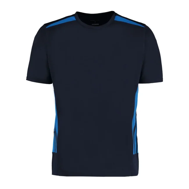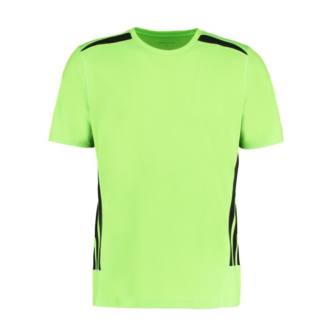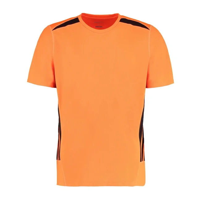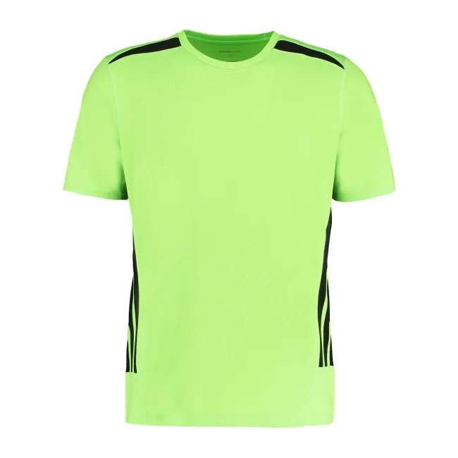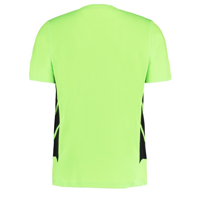 100% poliestere. T-shirt manica corta set-in, poliestere micro mesh, orlo posteriore curvo, dritto sul davanti e sulle maniche, fasce di colore contrastante su fianchi spalle, struttura con cuciture laterali.