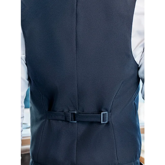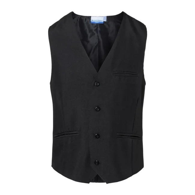 100% poliestere. Gilet uomo basic, taglio ampio e confortevole, pinces sul busto, due tasche laterali, una tasca interna, quattro bottoni.