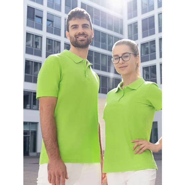 51% poliestere riciclato, 47% cotone, 2% elastan, 220 g/m², jersey-piqué. Polo da uomo in materiale resistente e sostenibile, easy-care. Taglio dritto, colletto in maglia con banda di rinforzo, bordi manica in maglia, cuciture doppie, pattina a 3 bottoni a contrasto, spacchetti laterali. Prodotto certificato GRS, Green Button e Oeko-Tex.