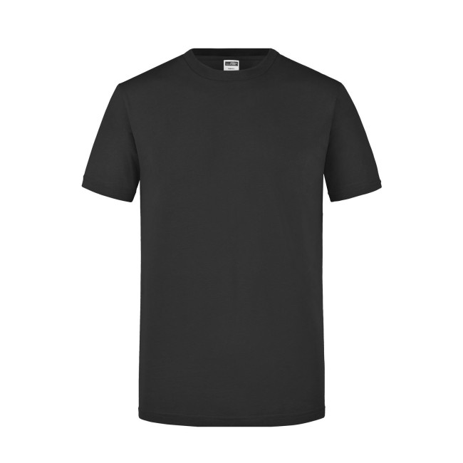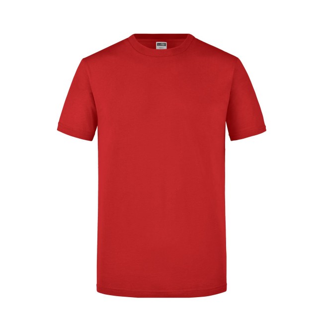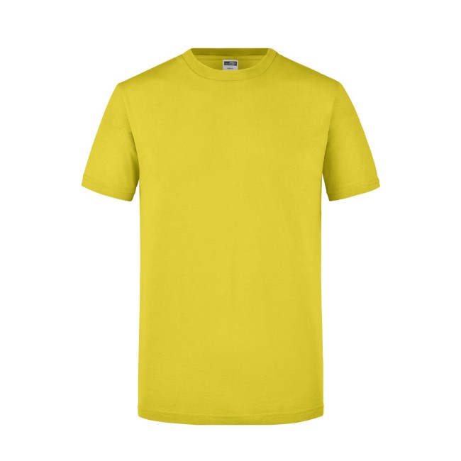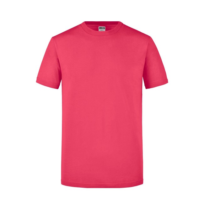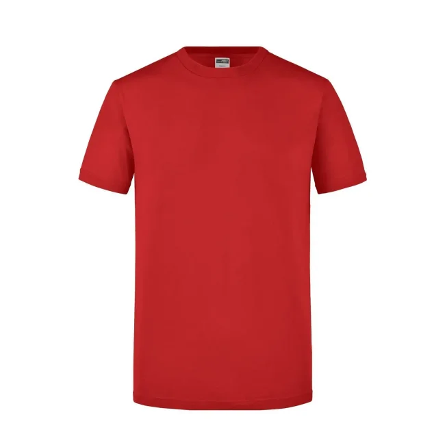 100% cotone. T-Shirt girocollo attillata Single jersey pretrattato che mantiene la forma,Taglio attillato con cuciture laterali, Collo rotondo con 1 x 1 girocollo e necktape a costie. Tessuto esterno (160 g/m²): manica corta, Slimfit.