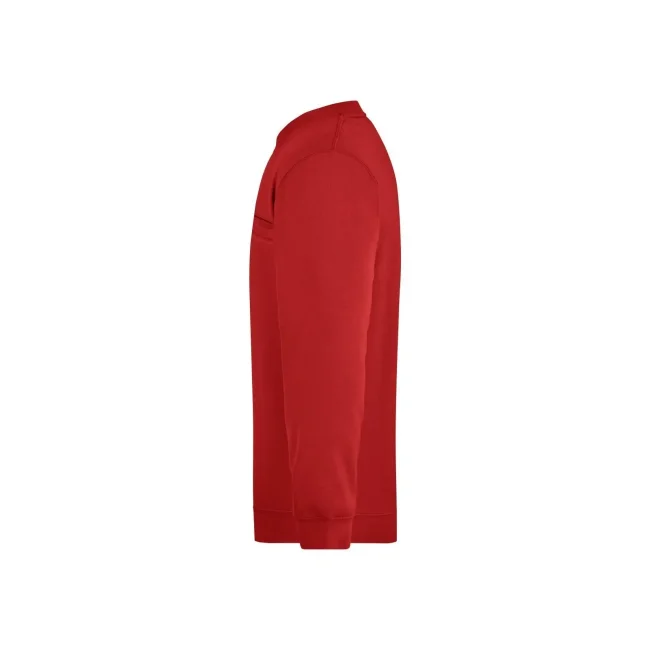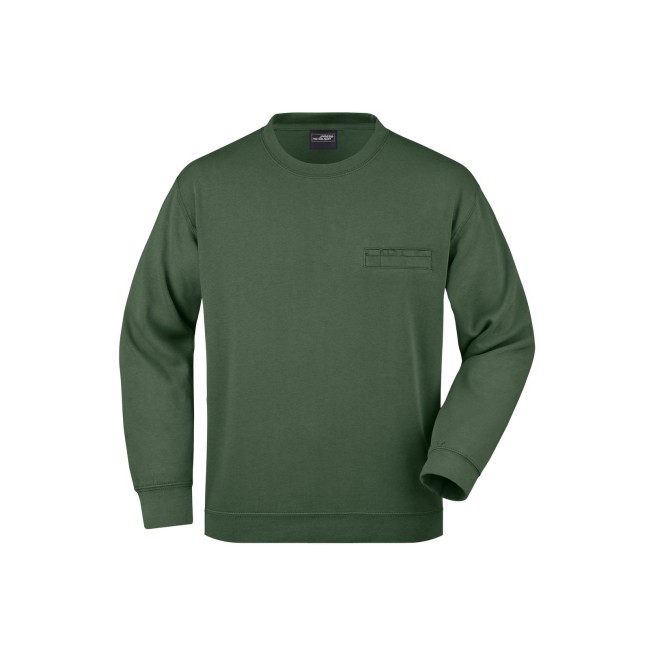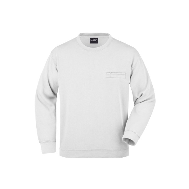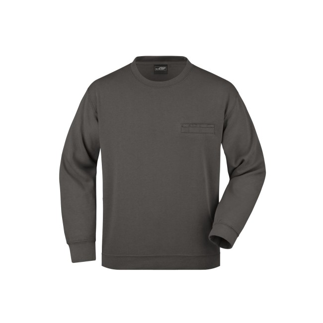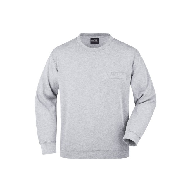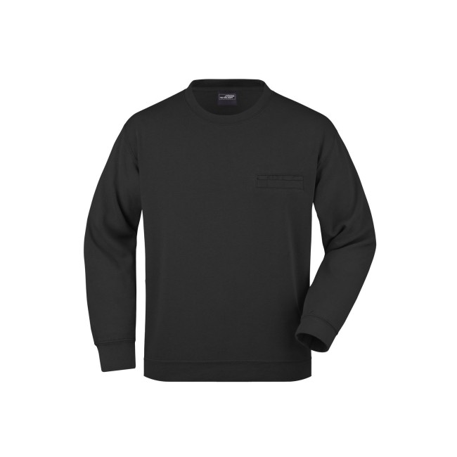 80% cotone, 20% poliestere. Sweat-Shirt classica con taschino Tessuto felpa di alta qualità con interno felpato. Doppie cuciture robuste sulle spalle, in vita, sullo scollo e sulla giromanica, girovita con elastan, Necktape e inserto mezzaluna sulla nuca, Taschino, Lavabile a 60°, mantiene la forma, Tessuto felpato a tre fili, Tessuto esterno (300 g/m²): Manica lunga, Professionale, Collo rotondo.