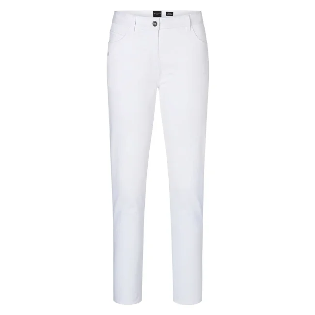 98% cotone, 2% elastan. Pantaloni casual da uomo in stile classico a 5 tasche, sviluppato per le massime esigenze di lavaggio (bianco: lavabile a 95°C / colorato: lavabile a 60°C), 2 tasche frontali, 1 tasca porta-monete a destra, 2 tasche posteriori, con passanti per cintura.