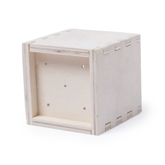 Include anche un'originale scatola di legno per la stampa del logo, con 6-8 semi e terreno di coltura. Presentata in una scatola dal design accattivante.
