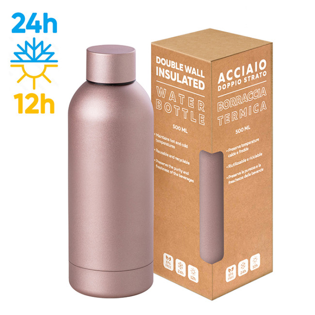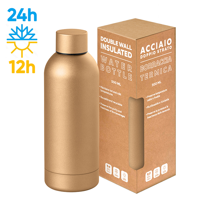 borraccia in acciaio inox 304/201 tappo in acciaio doppio strato capacità 500 ml rifinitura matta metallica box incluso