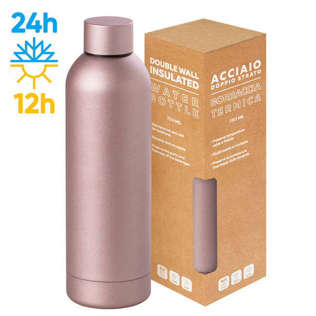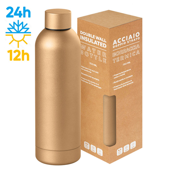 borraccia in acciaio inox 304/201 tappo in acciaio doppio strato capacità 750 ml rifinitura matta metallica box incluso