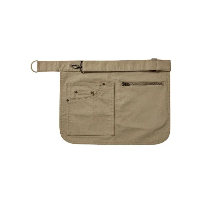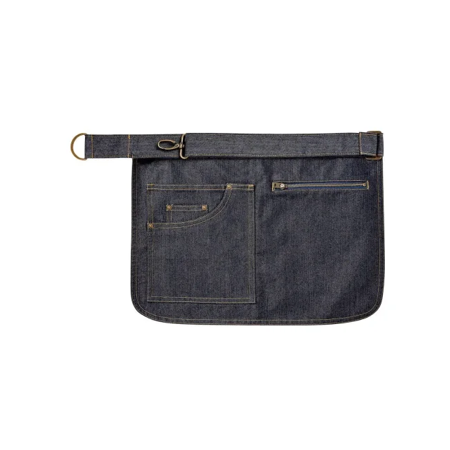 100% cotone canvas pesante. Grembiule in canvas con tasca di jeans a contrasto e chiusura a zip, laccio in vita con moschettone e occhiello, orlo arrotondato sul fondo. Denim: 70% cot. 30% pol. Twill.