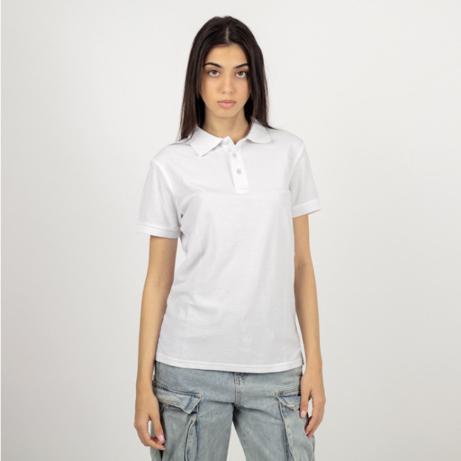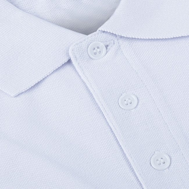 polo mezza manica cotone piquet pettinato, bianco 3 bottoni ribattitura doppio ago su collo, maniche e orlo nastro di rinforzo interno spacchi laterali bottone di ricambio incluso colori reattivi 180 g/m2