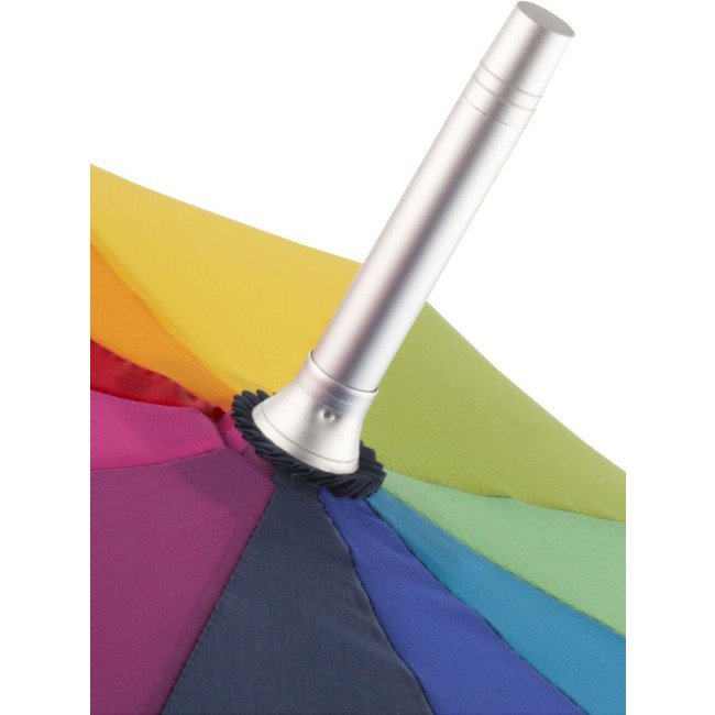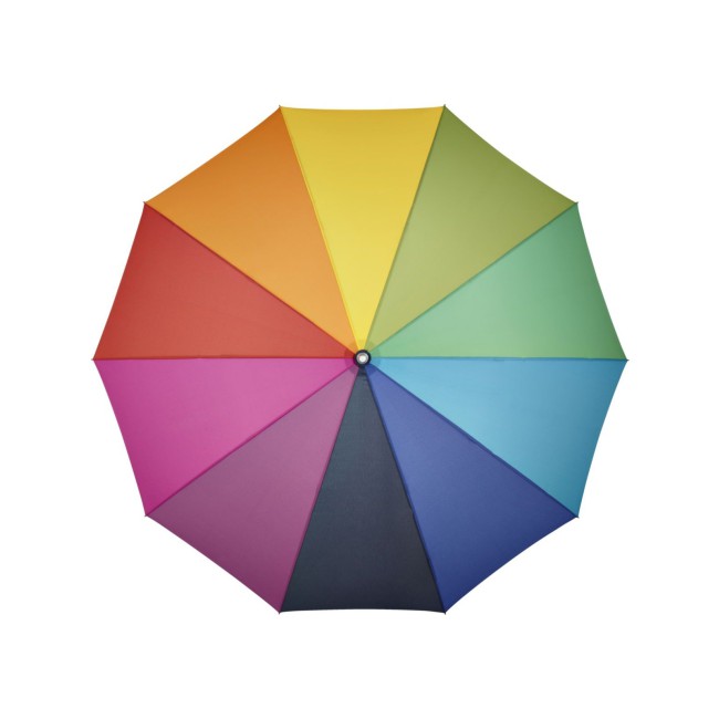 Copertura: 100% poliestere, manico: plastica, asta: alluminio. Ombrello di media misura, dotato di bacchette flessibili in fibra di vetro, manico nero soft-touch. Diametro: 115 cm, lunghezza da chiuso: 92 cm, 10 pannelli.