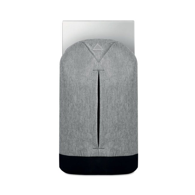 Zaino antifurto in poliestere 600D tono su tono con tasca esterna con chiusura zip. Comparto per laptop 13''. Comparto sul retro con chiusura a zip.