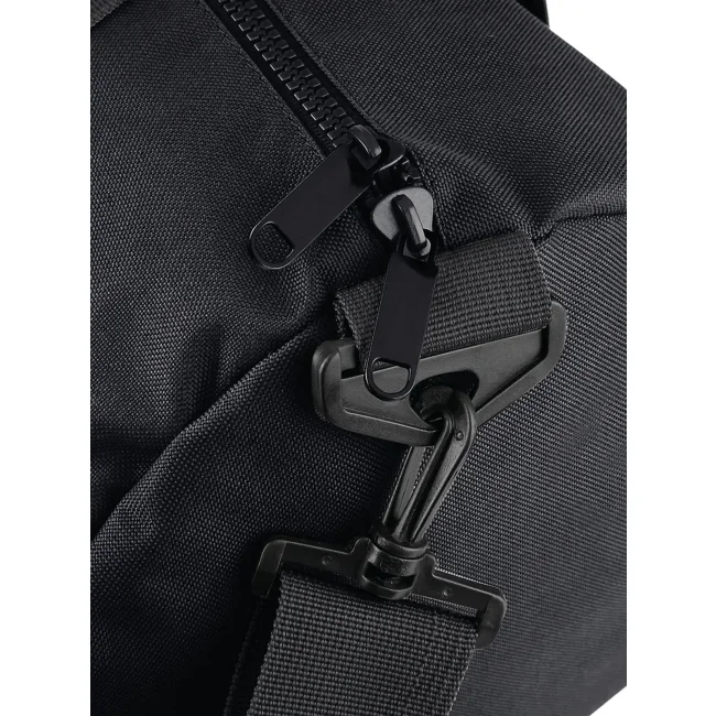100% poliestere 600d. Borsone con tasca a sacchetto con zip, spallina regolabile rimovibile, manici a tracolla. Dimensioni: 40 x 20 x 20 cm, capacita': 12 litri, area di stampa: 11 x 11 cm.