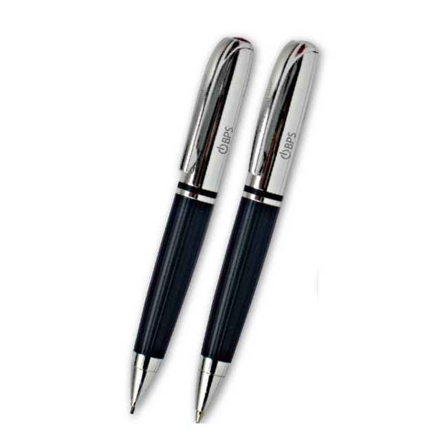 Mini parure "You Young Coveri" composta da penna a sfera e mina in metallo cromato, finiture blu. Refil blu.