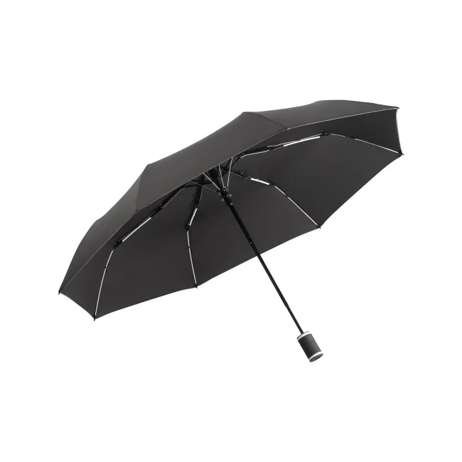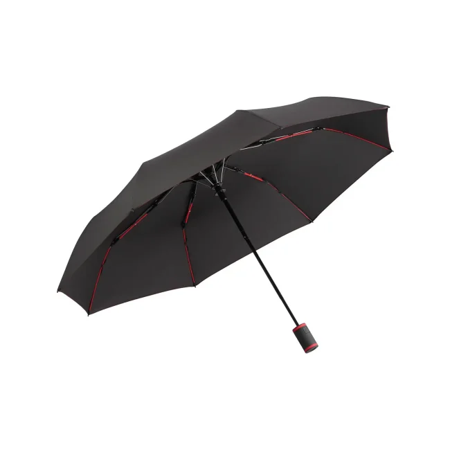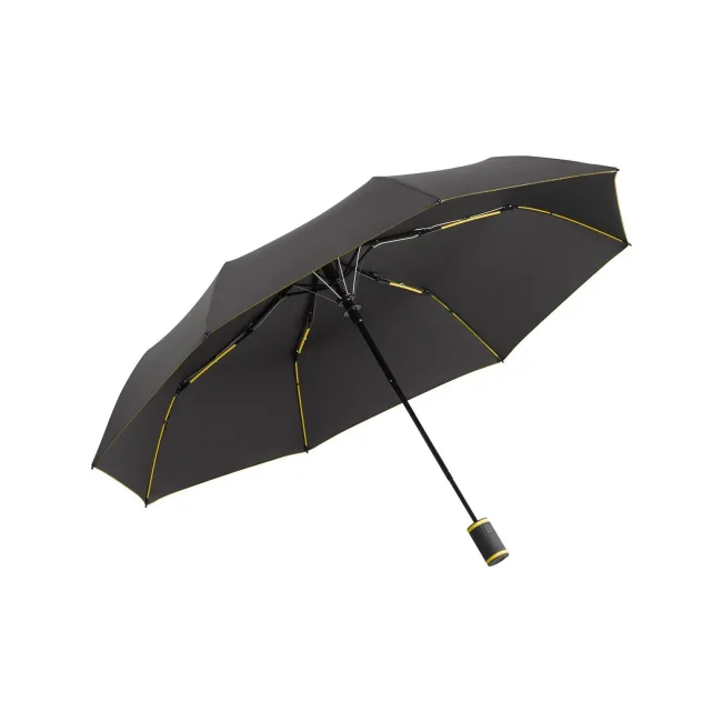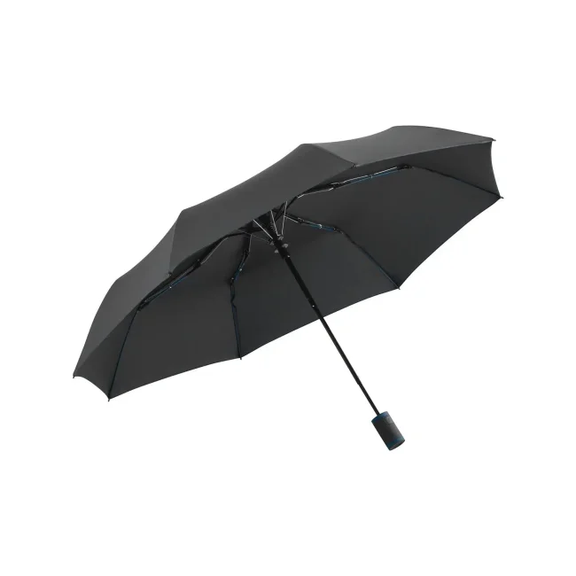 Elegante ombrello tascabile automatico con elementi colorati. Confortevole funzione automatica, pregiato sistema Windproof per la massima flessibilità del telaio, stecche in fibra di vetro flessibili, materiale di copertura in poliestere pongee di plastica certificata. STANDARD 100 by OEKO-TEX. Diametro: 94 cm, lunghezza da chiuso: 28 cm, 8 pannelli.