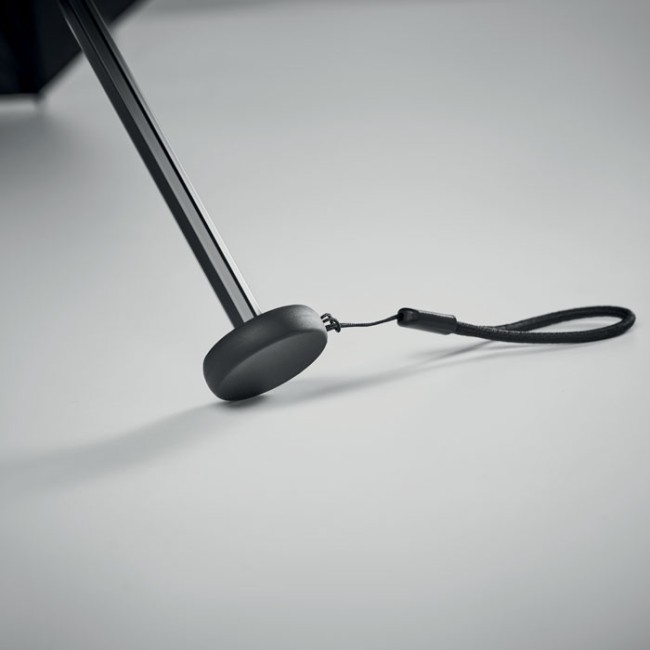 Mini ombrello antivento a 3 segmenti ultra leggero da 19'', apertura manuale in poliestere pongee 30D, fusto e stecche in fibra di carbonio nero. Chiusura manuale. In custodia. 100 gr.