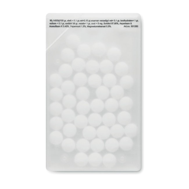 Dispenser 'carta di credito' per mentine. 8 grammi di mentine inclusi.
