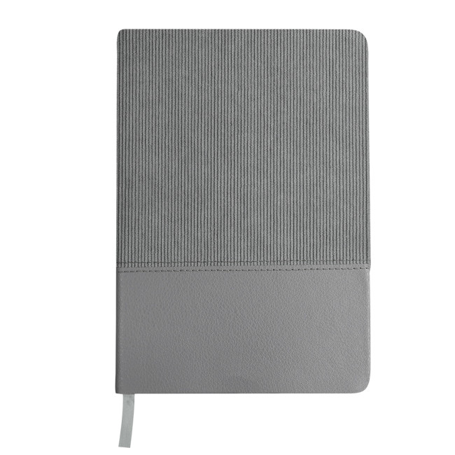 Taccuino A5 realizzato in morbido velluto a coste in poliestere e PU riciclato. Include 80 fogli color crema, con layout a righe singole e segnalibro coordinato. Logo PU Riciclato sulla copertina posteriore.La pelle PU riciclata si distingue per la sua resistenza ed elasticità. Questo materiale riciclato e riciclabile è una opzione sostenibile che recupera le fibre scartate nei processi di fabbricazione, minimizzando così gli sprechi di materiale e contribuendo a ridurre l'impatto ambientale, mantenendo al contempo le sue proprietà originali.