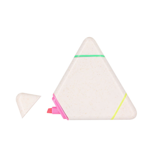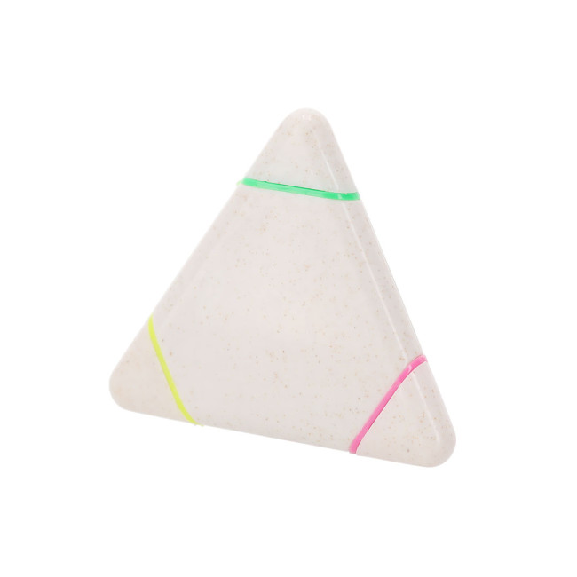 Originale evidenziatore fluorescente di tre colori realizzato in canna di grano. Con corpo triangolare in morbida finitura brillante, progettato specialmente per il marcaggio a colori. Con cappucci opachi. La canna di grano promuove l'uso di materie prime naturali, riducendo così le emissioni inquinanti.