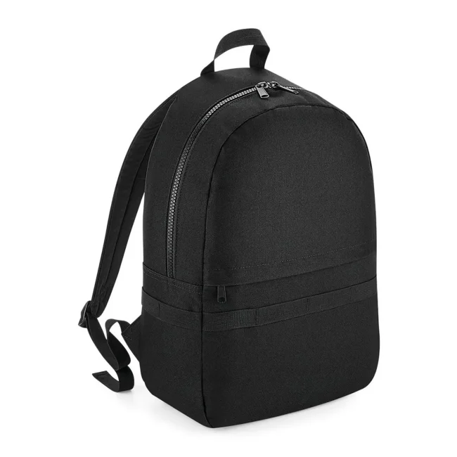 100% Poliestere 600D. Zaino con etichetta TearAway, anelli di fettuccia per il fissaggio di più tasche Modulr. Tasca frontale con zip, tasca interna a sacchetto, pannello posteriore imbottito, si integra con i modelli BG241 e BG242 offrendo migliaia di combinazioni possibili. Dimensioni: 33x47x18cm. Capacità: 20 litri. Massima Area di stampa: 16x14cm.