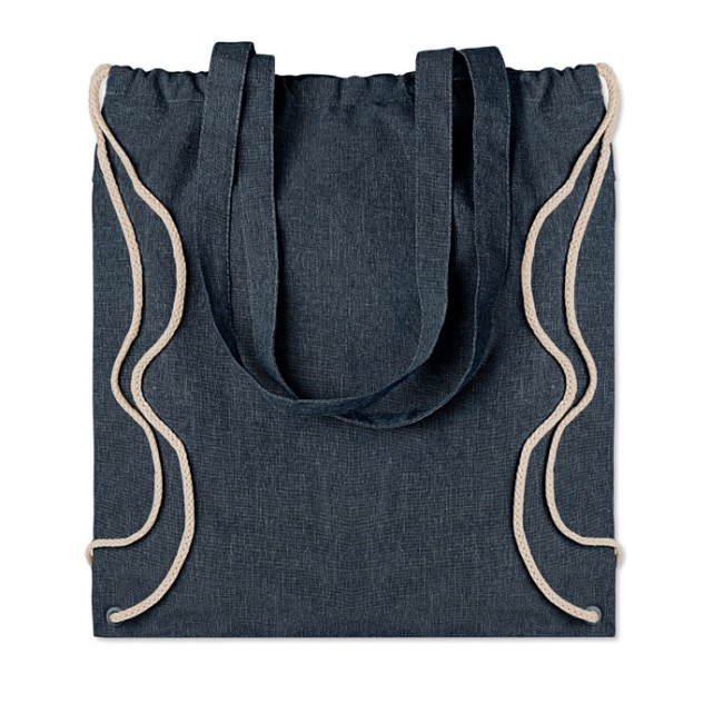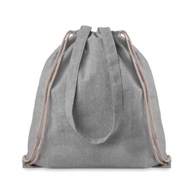 Sacca tono su tono in cotone e poliestere riciclati con coulisse e manici lunghi (20%/80%). Ca.140gr/m². Questo articolo può restringersi dopo la stampa.