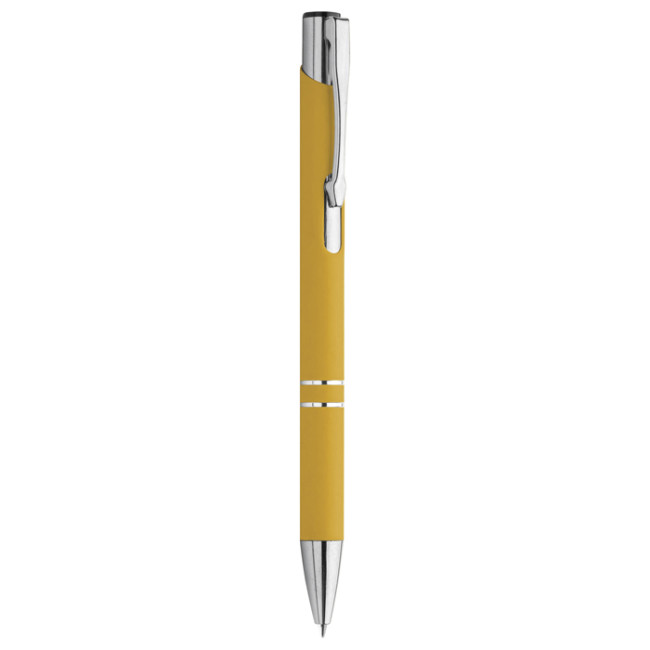 penna a sfera in metallo meccanismo a scatto fusto con rifinitura matta minuterie in metallo cromato refill nero