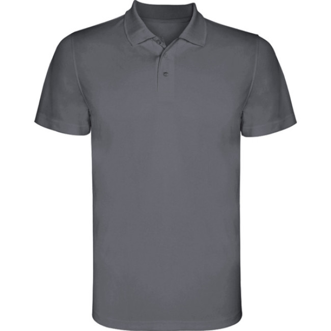 Polo tecnica manica corta. Collo tricot con chiusura a tre bottoni. Tessuto traspirante facile lavaggio e asciugatura.
