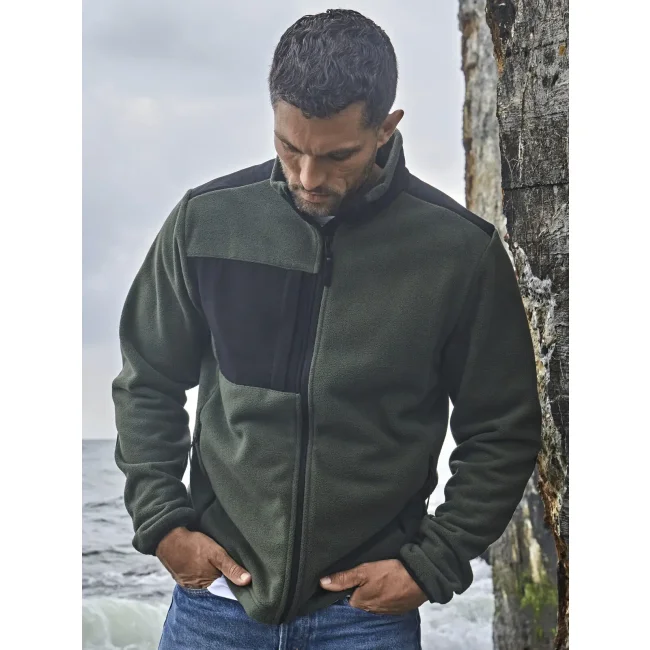 100% poliestere, ripstop: 92% poliestere, 8% elastan. Giacca in pile con zip,rinforzata su spalle e gomiti, con tasca sul petto,2 ampie tasche frontali e fasce elastiche sulle maniche.