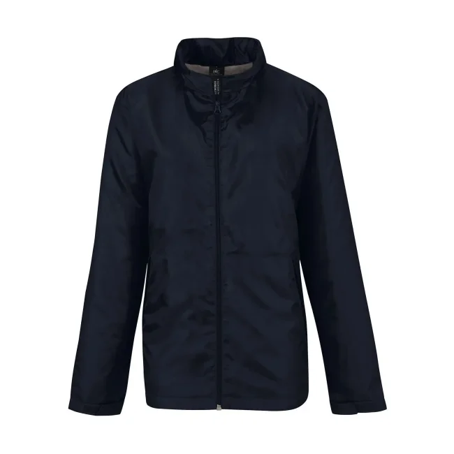 100% poliestere taffetà. Giacca antivento, idrorepellente e anti-pilling, con rivestimento traspirante, colletto rialzato, orlo inferiore e polsini regolabili, rivestimento PU, doppie cuciture sulle spalle, due tasche frontali con zip, adatta a tutte le tecniche di stampa e ricamo.