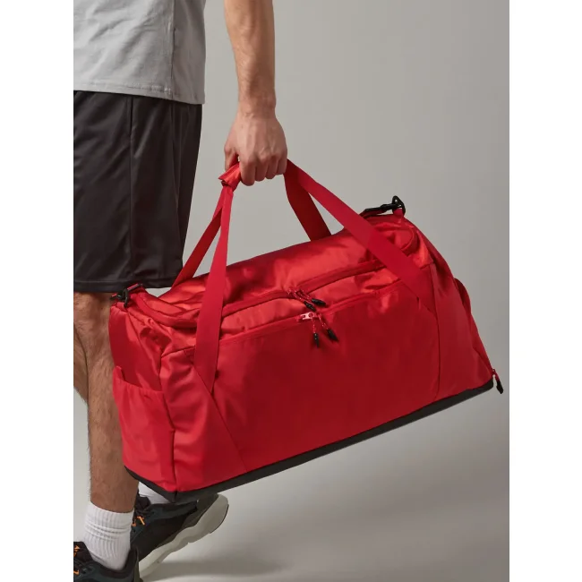 100% poliestere riciclato. Borsone in poliestere riciclato certificato GRS, apertura con due zip bidirezionali, tasca dedicata per racchetta, adatto per racchette fino a circa 23cm di larghezza, manicotto per mazza da hockey con elastico di fissaggio, tasca porta scarpe e tasca impermeabile porta indumenti bagnati, tasca frontale con zip, tasca posteriore con zip, tasca laterale in rete elasticizzata. Dimensioni: 59x26x30 cm, Capacità: 32 litri. Etichetta strappabile.