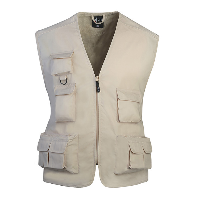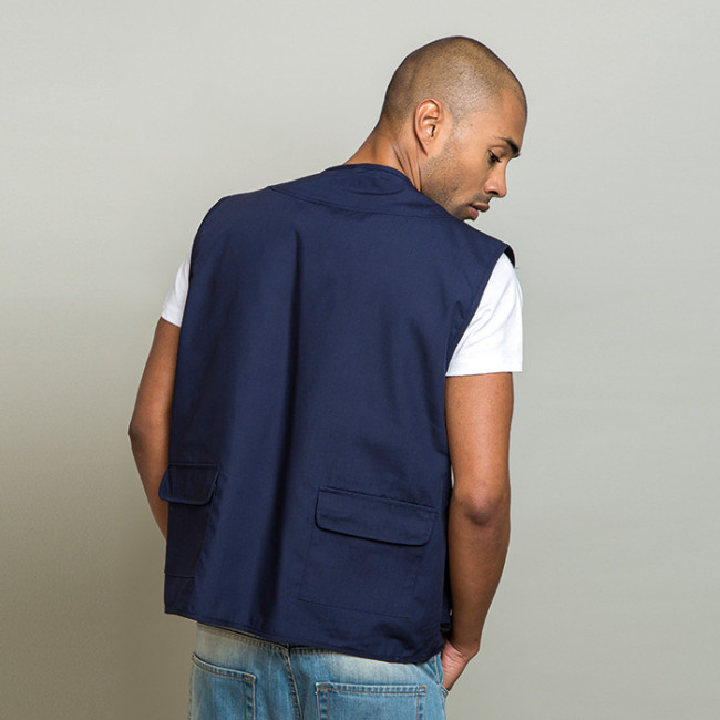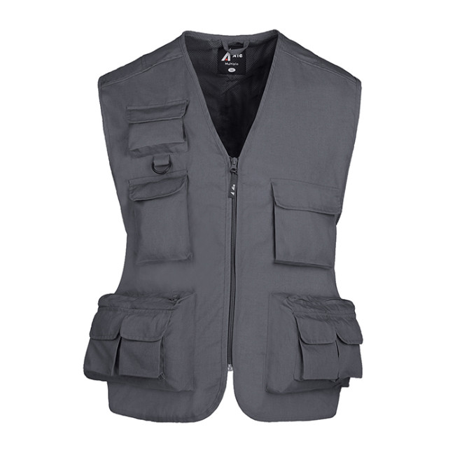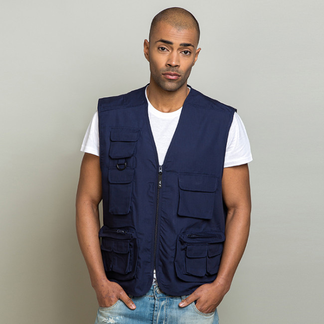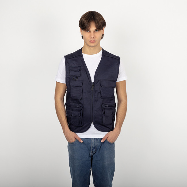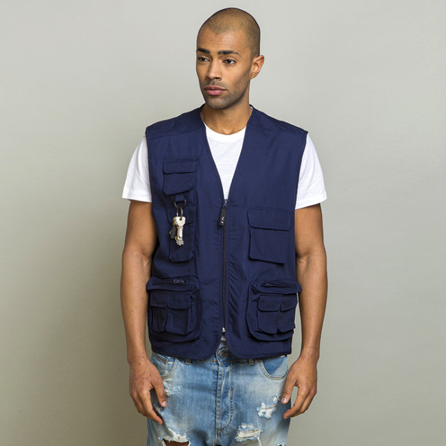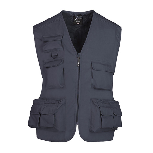 gilet in policotton multitasche chiusura con zip fodera interna in tessuto traspirante doppia tasca sul retro gancio portachiavi