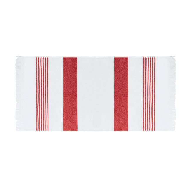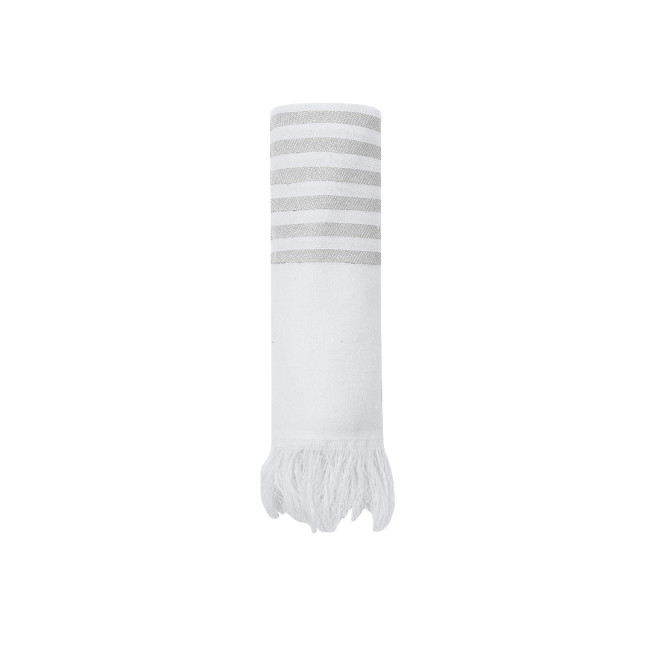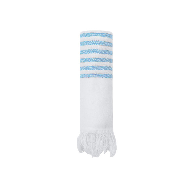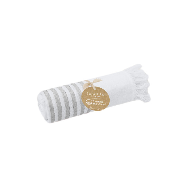 Morbido pareo-asciugamano di 3000 g/m² realizzato in una combinazione di cotone riciclato e poliestere riciclato SEAQUAL.Il suo design presenta una base bianca combinata con righe colorate e decorata da distintivi frange agli estremi. Include etichetta con design SEAQUAL che certifica la sua origine sostenibile e il suo contributo alla pulizia degli oceani. SEAQUAL INITIATIVE lavora con partner e autorità per aiutare a pulire i nostri oceani. I rifiuti marini delle nostre spiagge fondali e superfici oceaniche fiumi ed estuari vengono raccolti da programmi di pulizia. Vengono quindi classificati in diversi tipi di materiali e la porzione di plastica viene pulita e trasformata in PLASTICA MARINA RICICLATA una materia prima completamente tracciabile che crea prodotti sostenibili e ispiratori. Scegliendo prodotti che contengono PLASTICA MARINA RICICLATA stai aiutando a pulire i nostri oceani.INSIEME PER UN OCEANO PULITO.