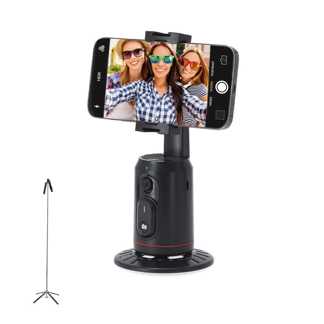 Supporto di Tracciamento Automatico con Base e Treppiede. Include:- Lente Ottica di Alta Qualità con IA: Consente un avanzato tracciamento a 360º e riconoscimento a doppio angolo, ideale per registrare sia in piedi che seduti, garantendo un tracciamento costante indipendentemente dal movimento.- Controlli Intuitivi tramite Gesti: Permette la registrazione senza interruzioni con semplici gesti della mano per avviare il tracciamento, mettere in pausa o interrompere la registrazione, offrendo un'esperienza di registrazione ininterrotta.- Compatibilità Universale e Funzionamento senza App: Perfetto per lo streaming e il vlogging, si integra con le piattaforme più popolari per un'esperienza plug-and-play per tutti gli utenti.- Otturatore Remoto Bluetooth® Integrato: Integrato nella custodia, l'otturatore rimovibile e ricaricabile è dotato di una batteria al litio da 1200 mAh per un'autonomia prolungata. Il supporto versatile con filettatura da 1/4” è compatibile con una vasta gamma di accessori e treppiedi.- Base Antiscivolo per Uso su Scrivania: Garantisce un posizionamento stabile durante l'uso.- Treppiede Telescopico Compatto: Dispone di una testa rotante a 360º con filettatura da 1/4”, un meccanismo estensibile e una base pieghevole antiscivolo. È regolabile in altezza per soddisfare diverse esigenze di registrazione, garantendo che i video siano catturati dall'angolazione perfetta.Base e otturatore ricaricabili tramite USB, con Type-CBase e treppiede presentati in singole scatole di design kraft.Prodotto secondo gli standard RoHS e in conformità con i seguenti requisiti di sicurezza:Sistema di protezione contro il surriscaldamento.Sistema di protezione contro il sovraccarico.Sistema di blocco per prevenire i cortocircuiti.Neerlandés:Automatische Volghouder met Basis en Statief. Inclusief:Hoogwaardige Optische Lens met AI: Maakt geavanceerde 360º-tracking en dubbele hoekherkenning mogelijk, ideaal voor het opnemen van zowel staande als zittende posities, waarbij cons