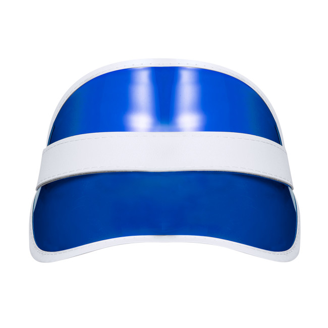 Visiera in PVC originale con protezione UV. Rifinito in colori trasparenti in combinazione con dettagli bianchi. Con cinturino elastico regolabile e disponibile in una varietà di combinazioni di colori.