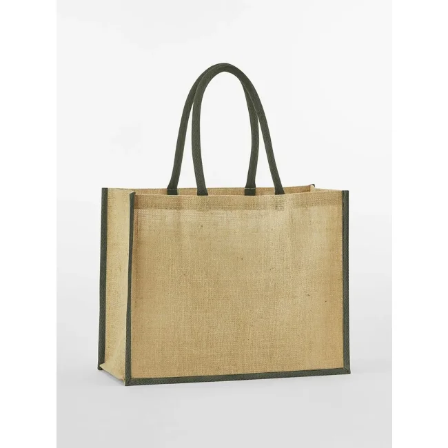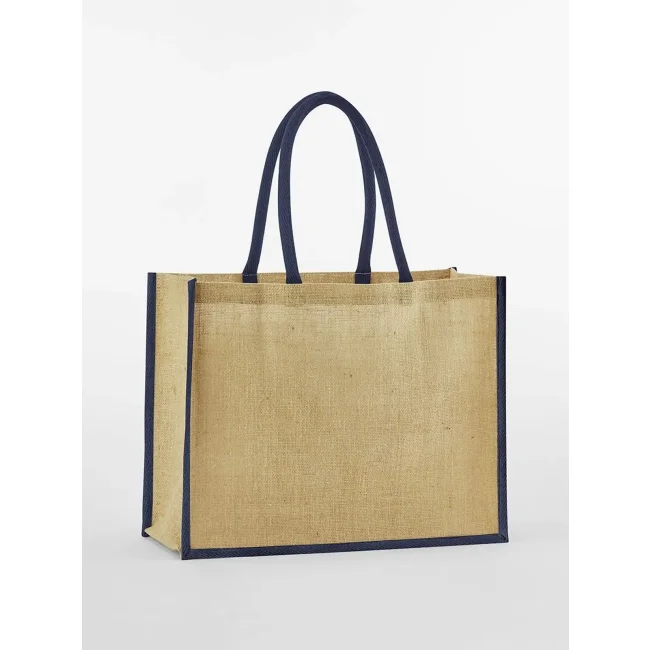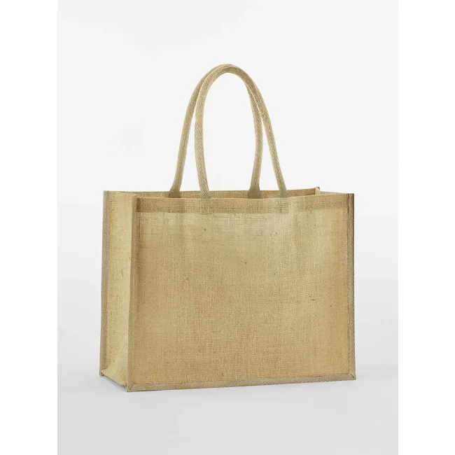 100% Jute. Shopper con manici in cotone, lunghezza del manico: 55cm. Dimensioni: 42x33x19cm. Capacità: 21 litri. Area di stampa: 34x24cm.