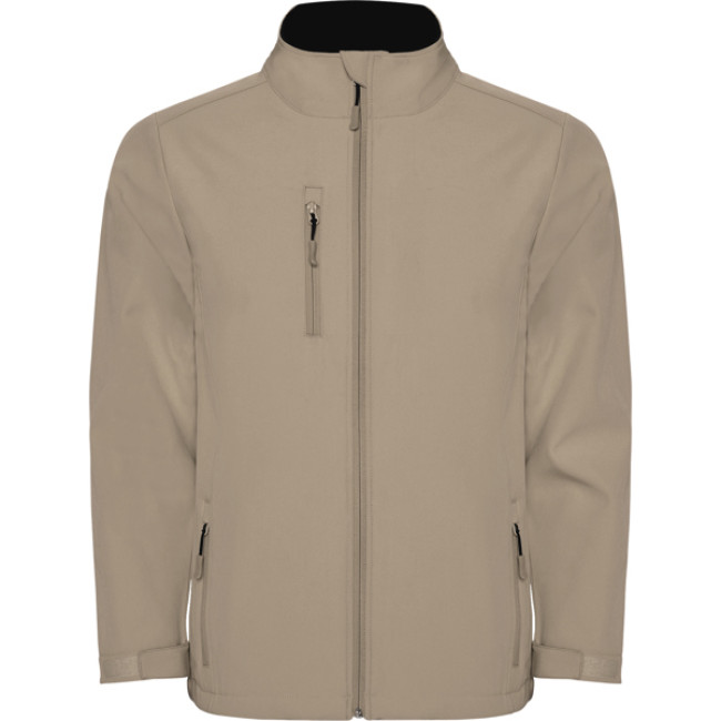 Giubbotto softshell a 2 strati con zip frontale invertita. Idrorepellente e antivento. Foderato in tessuto micropile. Due tasche laterali e una tasca sul petto destro con cerniere invertite. Protezione per il mento nello stesso tessuto invertito. Regolatori laterali interni nelle taglie da adulto.