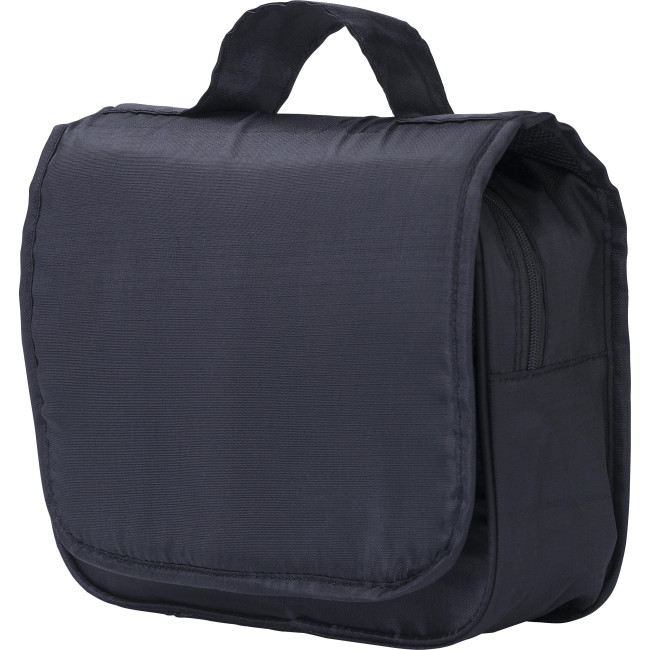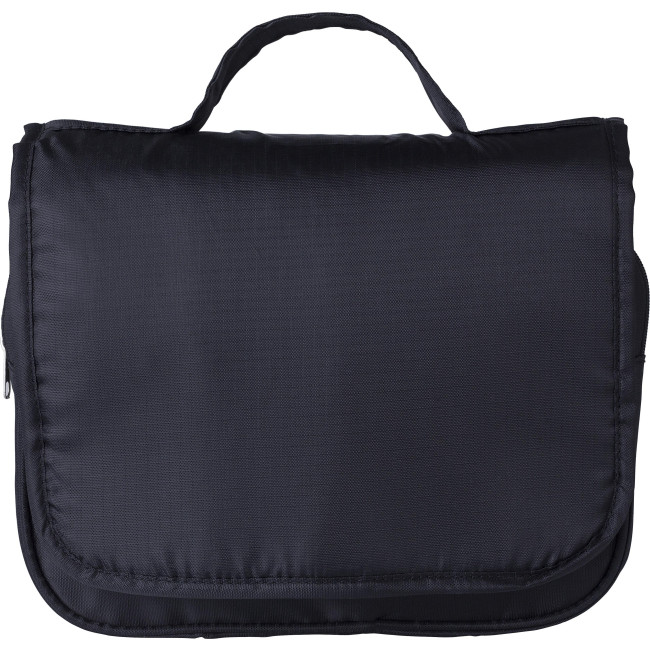 Necessaire da viaggio in poliestere 210 D ripstop, gancio per appenderlo, vanno con chiusura lampo sulla parte superiore quando aperta, tasca con rete grande e piccola con chiusura lampo, custodia sul retro, maniglia per il trasporto