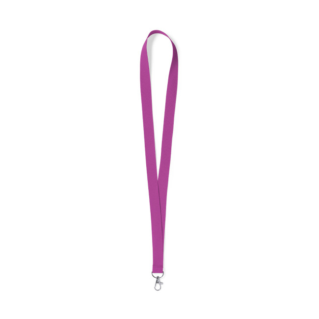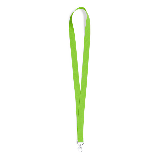 Lanyard realizzato in resistente poliestere. Con gancio girevole in metallo. Disponibile in un'ampia gamma di colori, con uno speciale colore bianco per la sublimazione.