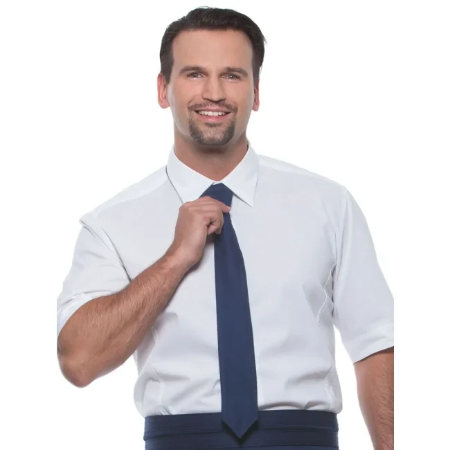 65% poliestere, 35% cotone. Cravatta, 215g/m² tessuto rifinito, irrestringibile, non stinge, pratico, da annodare, forma stretta moderna, adatta per lavanderie industriali. Taglia unica. Dimensioni: 148 x 6,5 cm (larghezza x lunghezza)