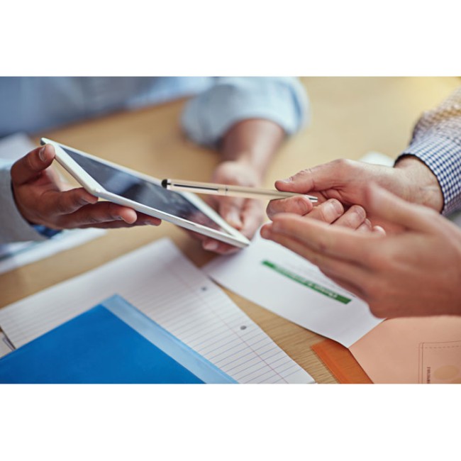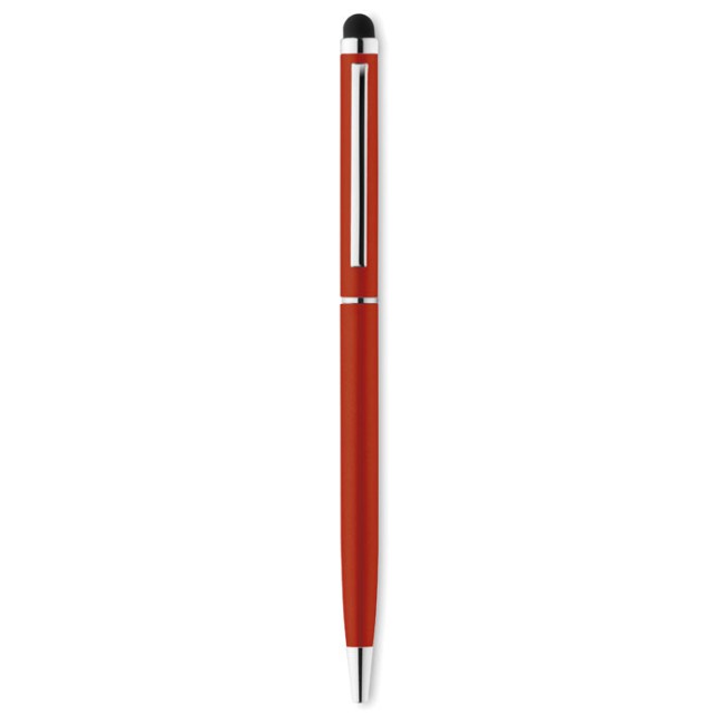 Penna a sfera twist-action in alluminio riciclato con stilo e clip cromata lucida. Inchiostro blu.