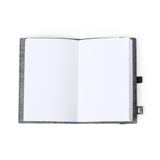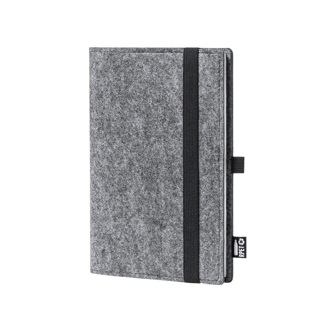 Block note della linea natura - formato A5 - con copertina in feltro RPETrecycled, il risultato della combinazione del processo di riciclaggio delle materie plastiche insieme alla tecnica millenaria di fabbricazione del feltro, ottenendo un materiale eco-trend che, oltre ad essere di origine riciclata, diventa anche riciclabile.Include 100 fogli lisci. Con chiusura ad elastico, portapenne ed etichetta RPET sulla copertin