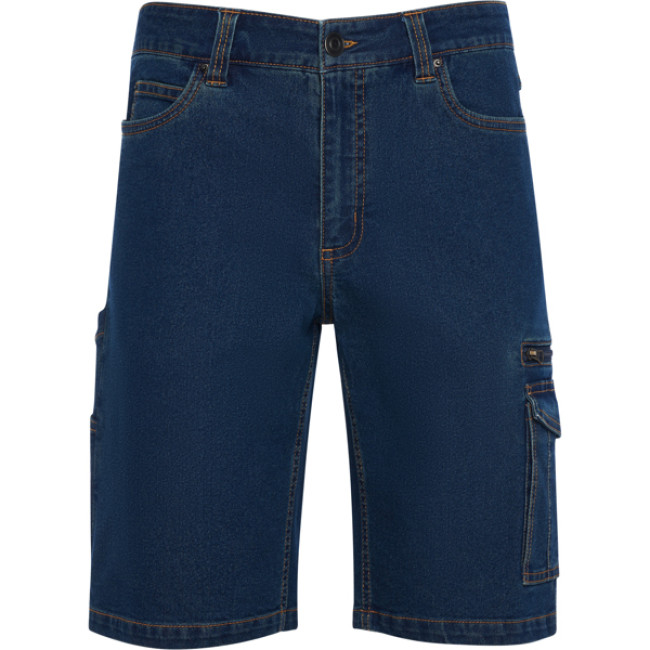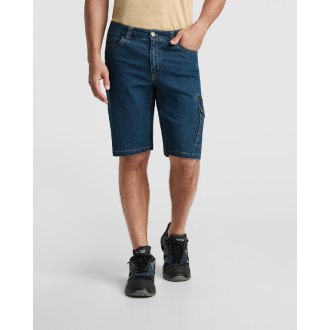 Short multitasche in denim.· Tessuto elasticizzato resistente.· Cintura in vita con passanti.· Due tasche anteriori sui fianchi con una tasca per le monete a destra.· Due tasche posteriori.· Tasca cargo sulla gamba destra con pattina e chiusura velcro.· Tasca integrata con cerniera sul cargo.· Tasca multifunzione allungata sulla gamba sinistra.· Etichetta Roly WRK esterna.
