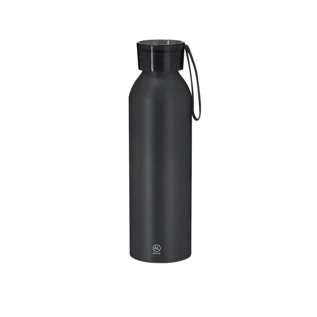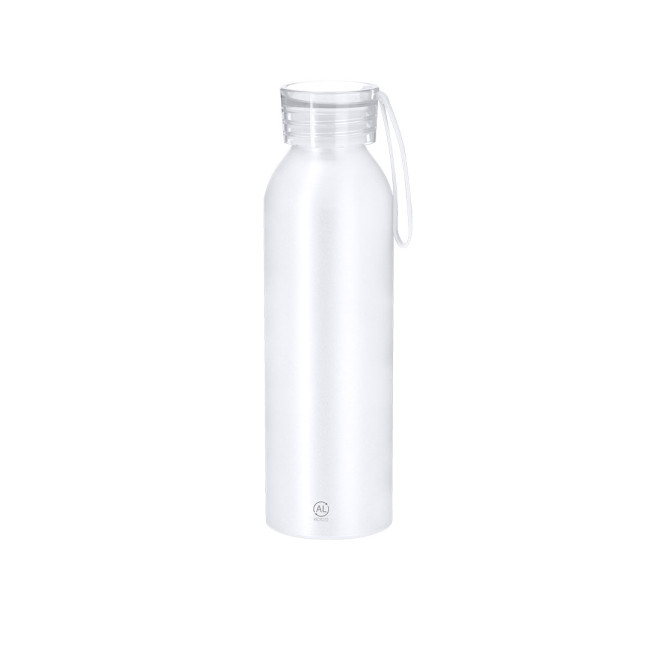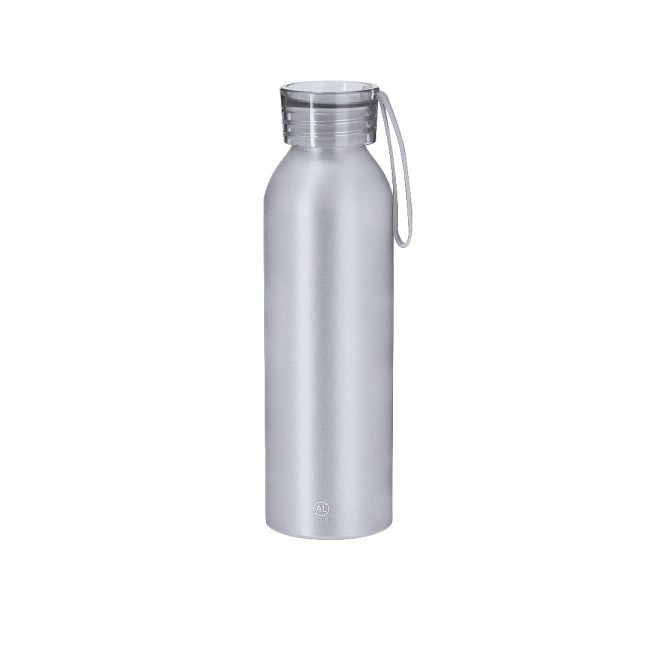 Bottiglia da 650 ml di capacità. Realizzata in alluminio riciclato resistente e sostenibile. Con tappo a vite traslucido e cordino abbinato per un facile trasporto. Corpo con finitura satinata. Priva di BPA. Include distintivo Alluminio Riciclato. L'alluminio riciclato è un materiale con possibilità di riciclo quasi infinite, senza perdere le sue proprietà originali e consumando meno energia in questo processo.