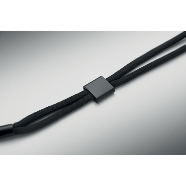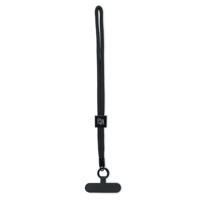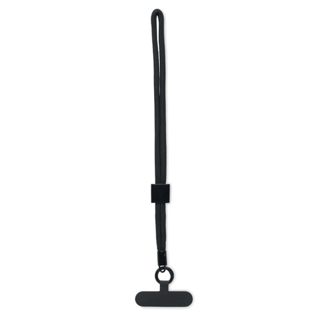Cordino da polso regolabile porta-corda del telefono in poliestere RPET. Lunghezza 25 cm.