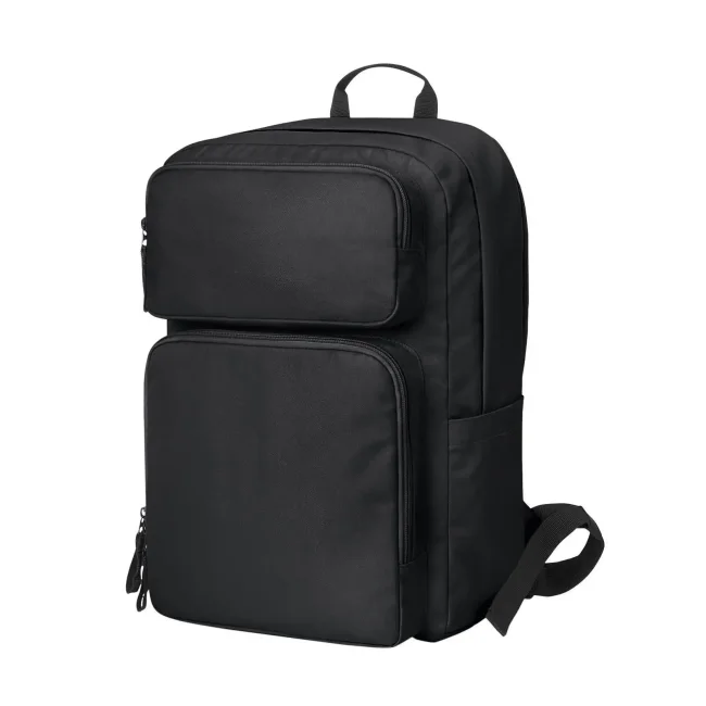 100% RPET 600d. Zaino per notebook con ampio scomparto principale con cerniera a 2 vie, scomparto imbottito per notebook due tasche frontali con zip, due laterali a scomparsa, schienale e spallacci imbottiti con cintura toracica regolabile in altezza. Tutti i materiali sono conformi alle ultime specifiche dell'UE. Senza PVC. Dimensioni: 28 x 42 x 12 cm. Capacità: 17 lt.