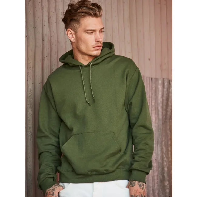 50% cotone 50% poliestere nublend. Felpa con cappuccio in tessuto NuBlend resistente ai pelucchi, realizzata con cotone coltivato negli Stati Uniti da fonti sostenibili, alta densità di punti per una tela di stampa liscia, cappuccio a 2 strati con occhielli, tasca frontale a marsupio, cordino abbinato con punta e annodato, cucitura a due aghi su collo, giromanica e girovita, polsini e girovita a costina. Etichetta strappabile.