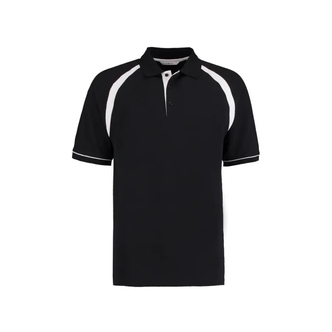 100% cotone piqué pettinato. Polo a maniche corte raglan, parte interna del colletto di colore contrastante, inserti di colore contrastante, 3 bottoni tono su tono, struttura con cuciture e spacchetti laterali.